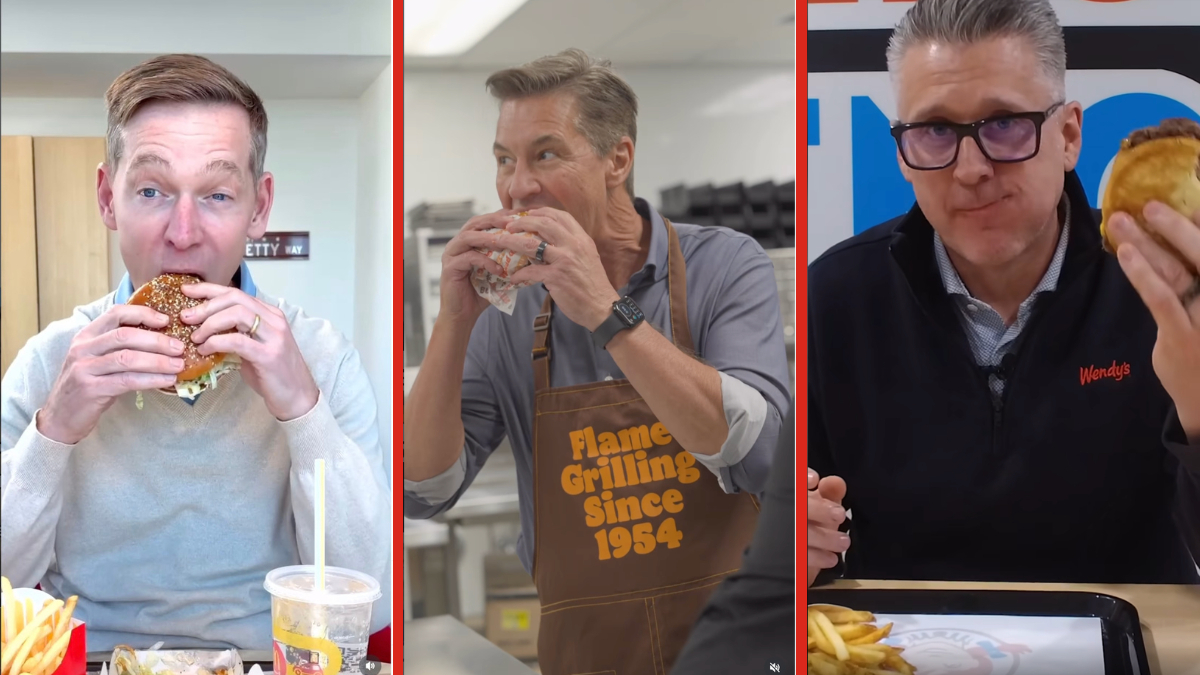 评论区满是调侃,有人说“他吃汉堡像吃羽衣甘蓝沙拉,毫无愉悦感”,有人吐槽“这是最小的第一口,明显不想吃”,Reddit上甚至有网友建议“公司若在乎未来,别让他再出镜”。本是普通翻车事件,却因竞争对手入局升级:汉堡王总裁Tom Curtis发布视频,大口咬“升级版”皇堡,吃到尽兴要餐巾,活像普通食客;Wendy’s汉堡美国区总裁Pete Suerken在领英发视频,边做培根堡边调侃“我们的机器一直正常工作”,影射麦当劳冰淇淋机故障问题,一场品牌“群嘲”正式展开。