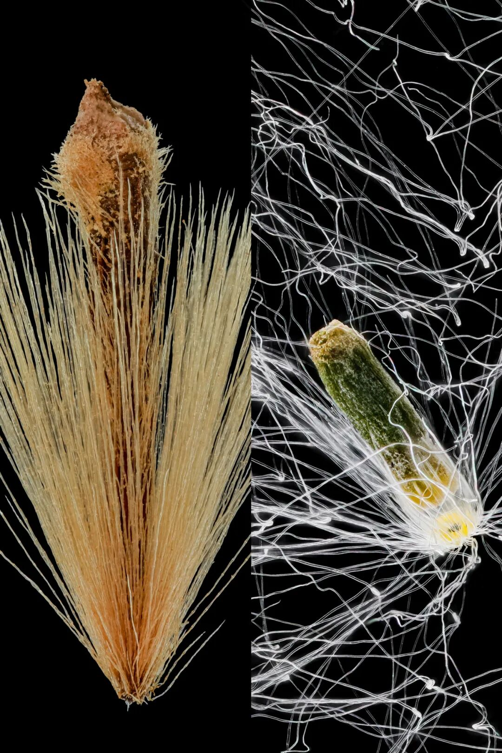 下左:法国梧桐果毛;下右:柳絮