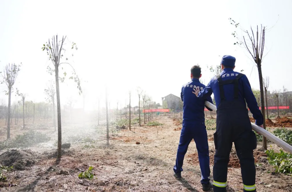 为确保义务植树活动安全有序进行,湖南队提前规划安排,深入现场勘察环境,明确保障重点,并制定了应急预案。在活动执勤过程中,队员们分工协作,一方面严格把控现场安全,做好人员疏导、车辆引导和秩序维护工作;另一方面利用装备优势,为新栽种的苗木逐一浇灌定根水,提高苗木的成活率。执勤之余,队员们还主动加入植树行列,挥锹培土、扶苗浇水,为长江岸线注入绿色活力。