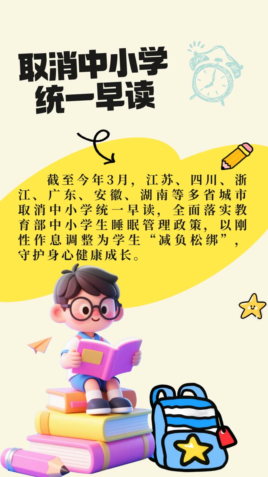 多个省份的城市已取消中小学统一早读