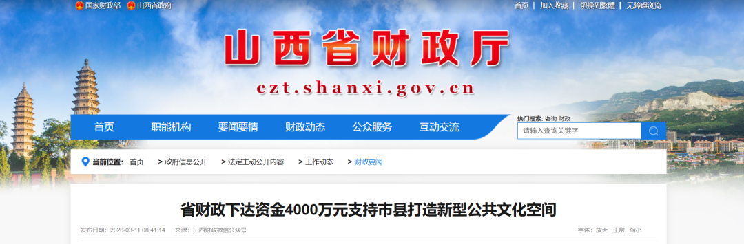 原标题:《【惠民】山西投入4000万元资金 支持市县打造新型公共文化空间》