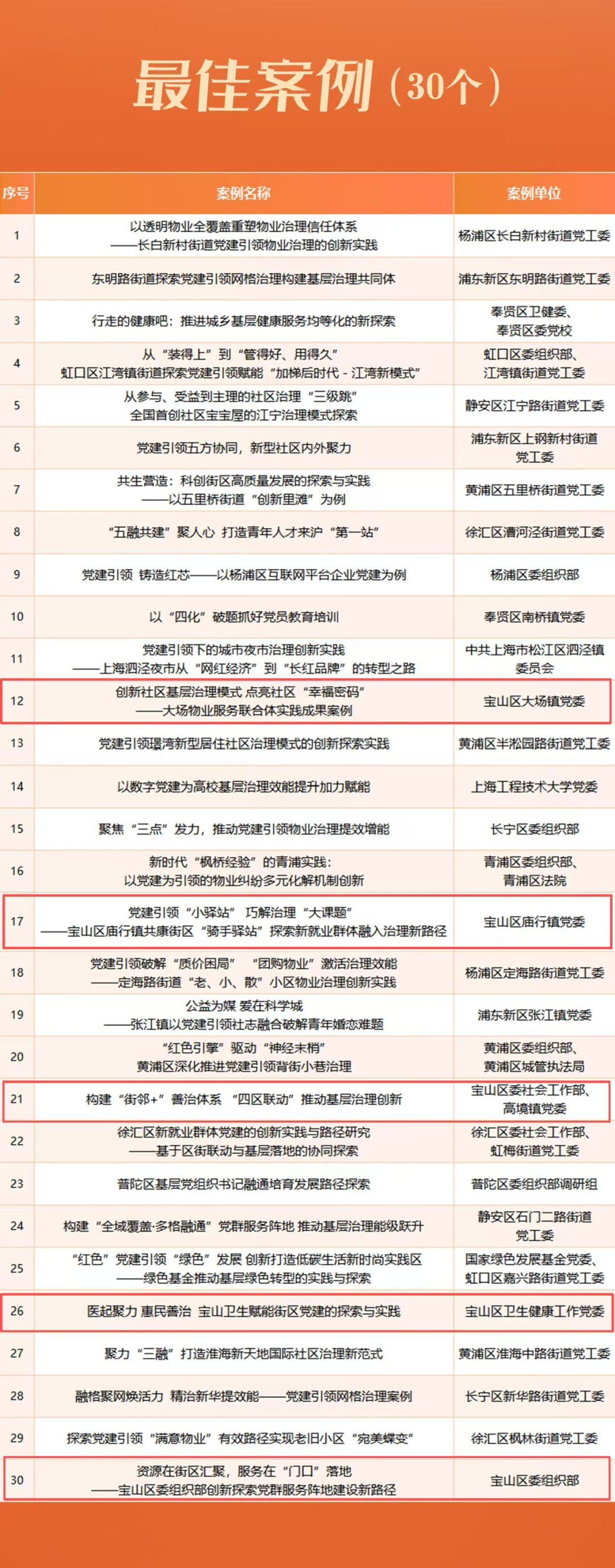 原标题:《宝山区9个案例获评第三届上海城市基层党建创新案例!》