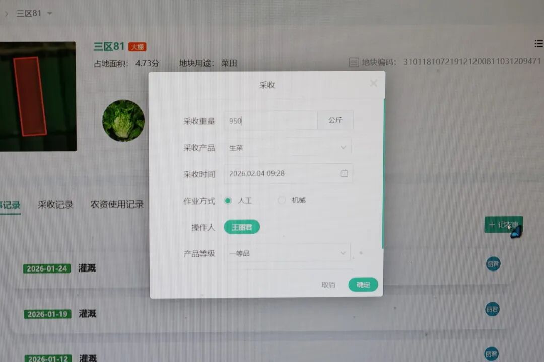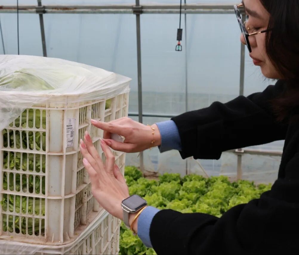 上海捞福来蔬菜专业合作社借助“神农口袋”平台,实现大棚及菜品种植情况可视化。蔬菜成熟后,工作人员采样快检合格,在平台输入品种、采收重量、时间等信息,即可生成并打印合格证标签,贴在包装上。消费者扫码就能查看菜品详情、收割时间、生产合作社等信息,实现溯源“一键可查”。