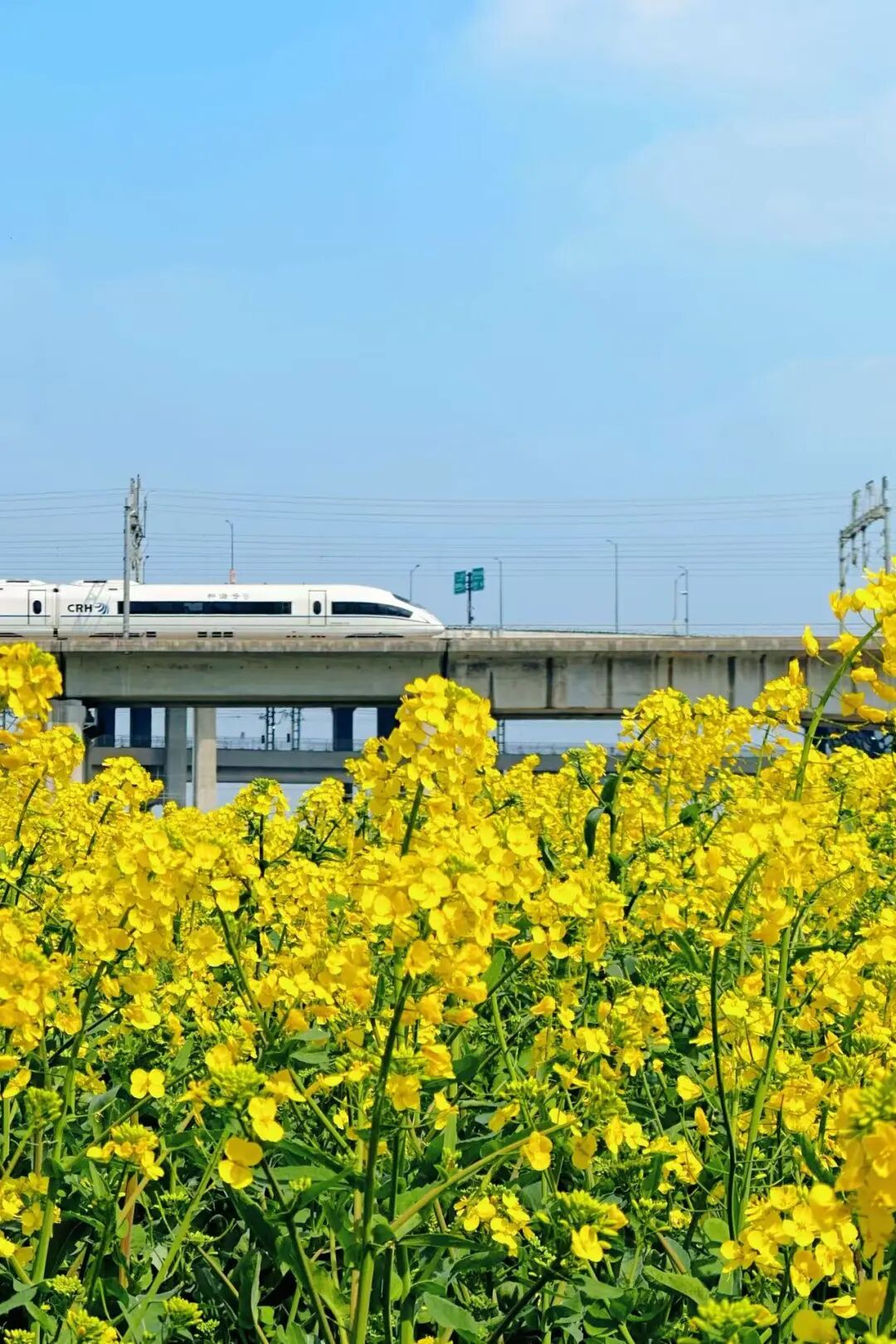 列车从花海中缓缓穿行