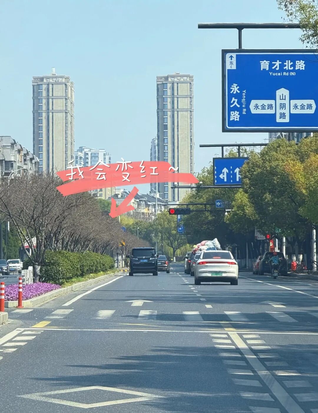 萧山一条路上的绿化带意外走红