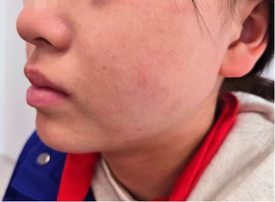 不久前,女孩悦悦(化名)和同学在花海中游玩了三个小时,当晚回家后,她的脸和脖子突然冒出密密麻麻的红色疹子,连成片,眼皮肿得像小核桃。家人见症状未缓解,第二天赶紧送她去医院。