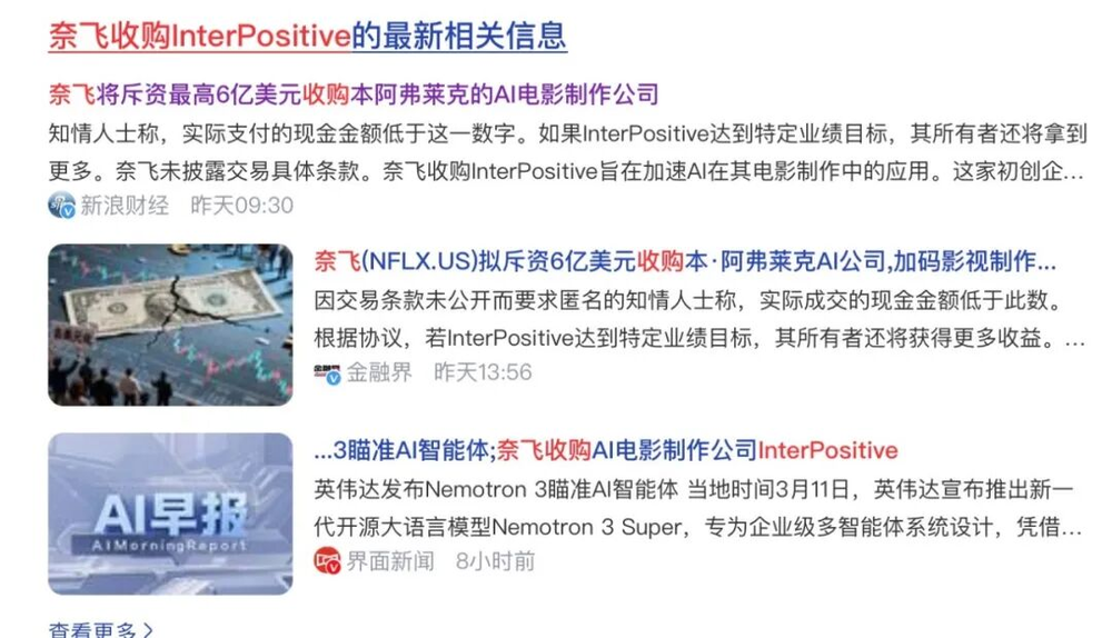 奈飞收购Inter Positive:AI赋能电影制作的关键一步