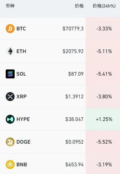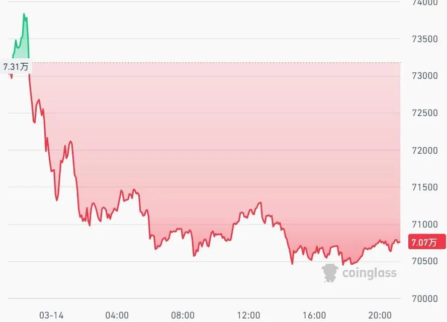 3月14日,加密货币市场出现集体下行态势,比特币价格跌破71000美元关口。