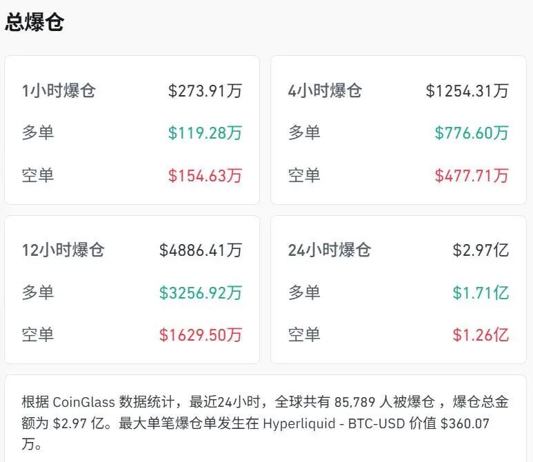 根据CoinGlass的数据统计,在最近24小时内,全球范围内有超过8万名加密货币投资者遭遇爆仓。