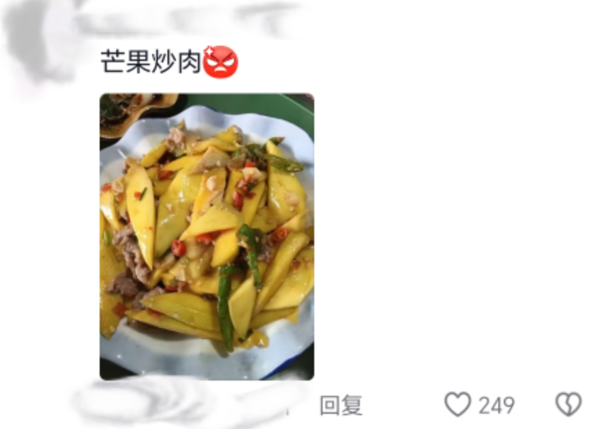 那就是火龙果炒饭、芒果炒肉……