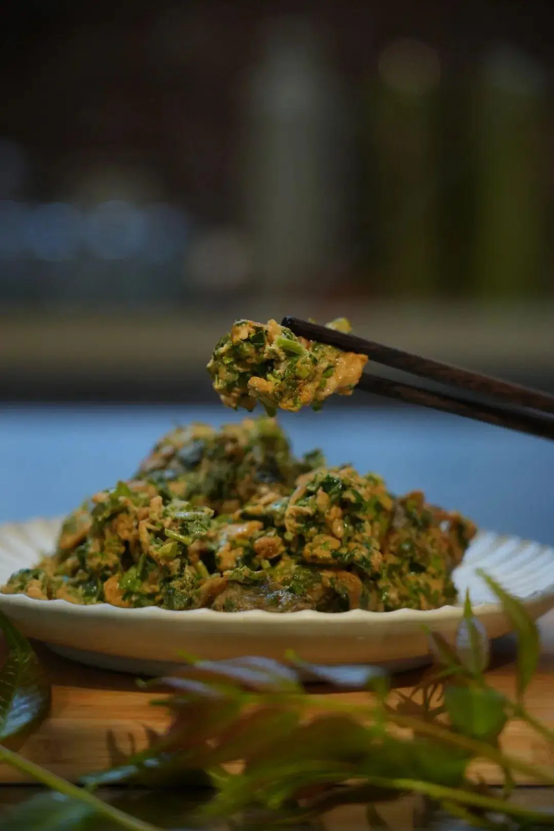 春日的香椿是庆阳餐桌的限定珍馐,绛紫嫩芽带着独特的馥郁香气,让爱者沉醉、惜者惦念。香椿炒蛋,蛋香与椿香交织,漫出满室春意;凉拌豆腐,清爽与醇香相融,沁润舌尖。一箸香椿,便是庆阳春日最浓的滋味。