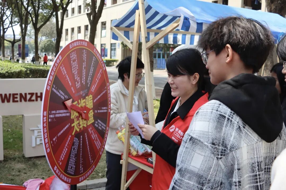 博雅楼A面广场还开展了科技反诈拼图挑战赛、AI反诈大转盘等多项互动游戏。活动设置了闯关集章环节,师生通过参与游戏答题,在趣味体验中学习反诈知识,集满印章后可以参与抽奖,兑换反诈日历、定制周边等宣传品。充满趣味的互动形式让现场氛围持续热烈,有效提高了反诈宣传的趣味性和参与度,帮助师生在轻松的氛围中掌握识别诈骗、防范陷阱的实用技巧。