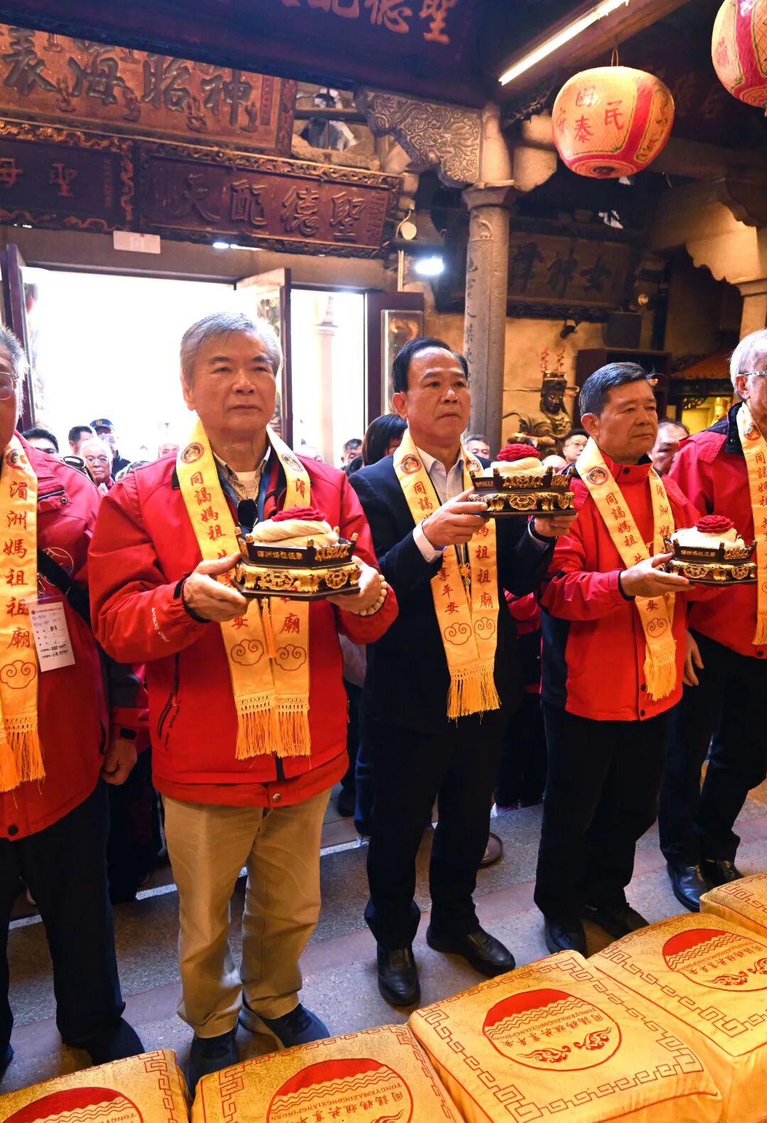 13日下午,进香团抵达湄洲岛码头后,湄洲妈祖祖庙董事会给予了热烈欢迎。湄洲妈祖祖庙董事会董事长林金赞陪同进香团向妈祖行庄严的三献礼。在湄洲岛期间,进香团还参与了祖庙天后殿的“晨拜妈祖”仪式。