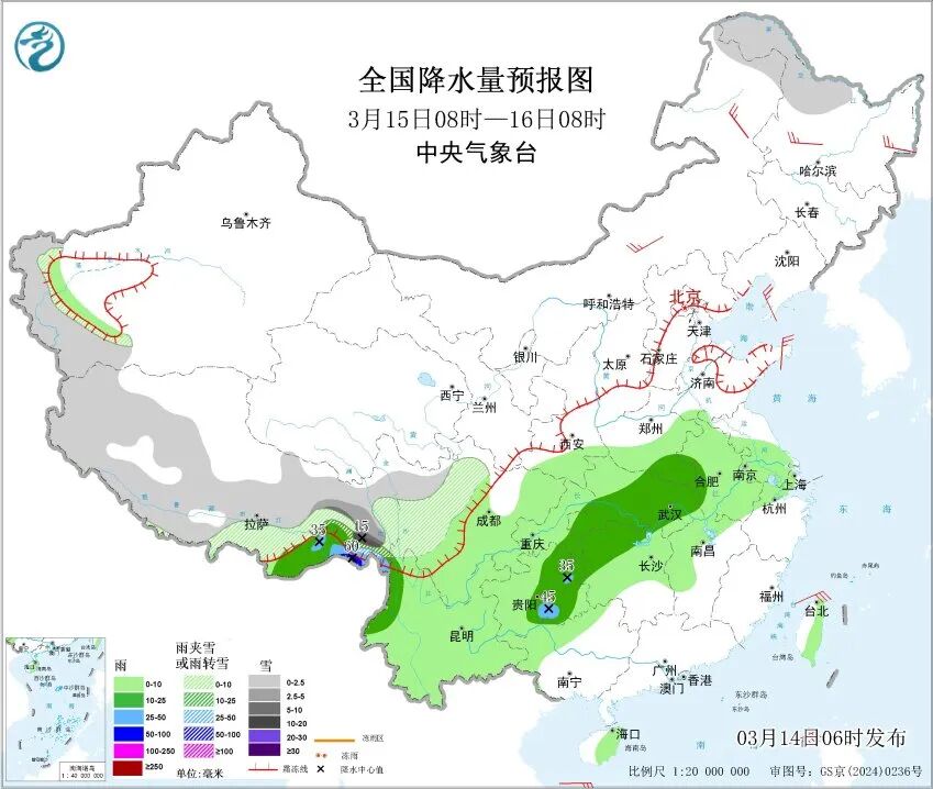 今天天空云量逐渐增加,整体天气以多云到阴天为主,最低气温9℃,最高气温约17℃。偏东风风力3~4级,沿江沿海地区风力稍大,为4~5级,相对湿度在95%到60%之间。这样的天气对赏花、户外出行等活动还算友好,但随着降雨区域向东扩展,今天夜间会有短时小雨悄然降临。