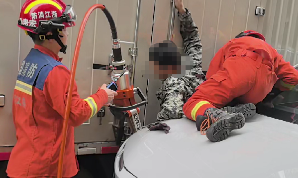 近日,浙江义乌一名货车司机在路边卸货时,货车突然溜车,他躲避不及,被卡在货车与后方小轿车之间,动弹不得,情况十分危急。
