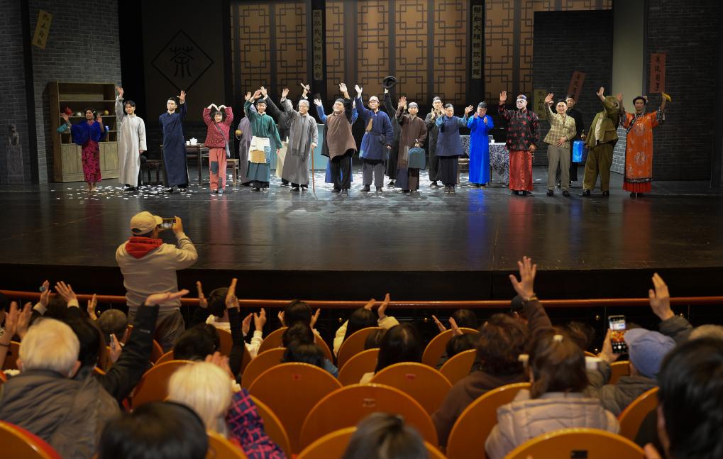 3月14日,演员们在《茶馆》专属版的演出中展现角色魅力。新华社记者 李贺 摄