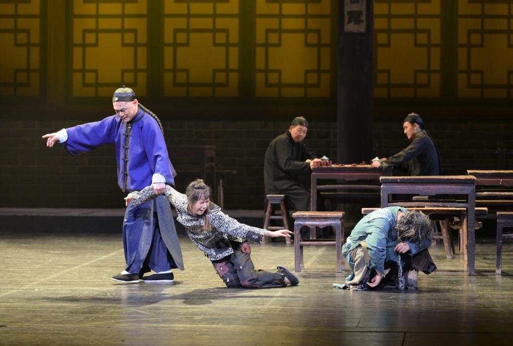 3月14日,演员们在《茶馆》专属版的演出中呈现精彩片段。新华社记者 李贺 摄