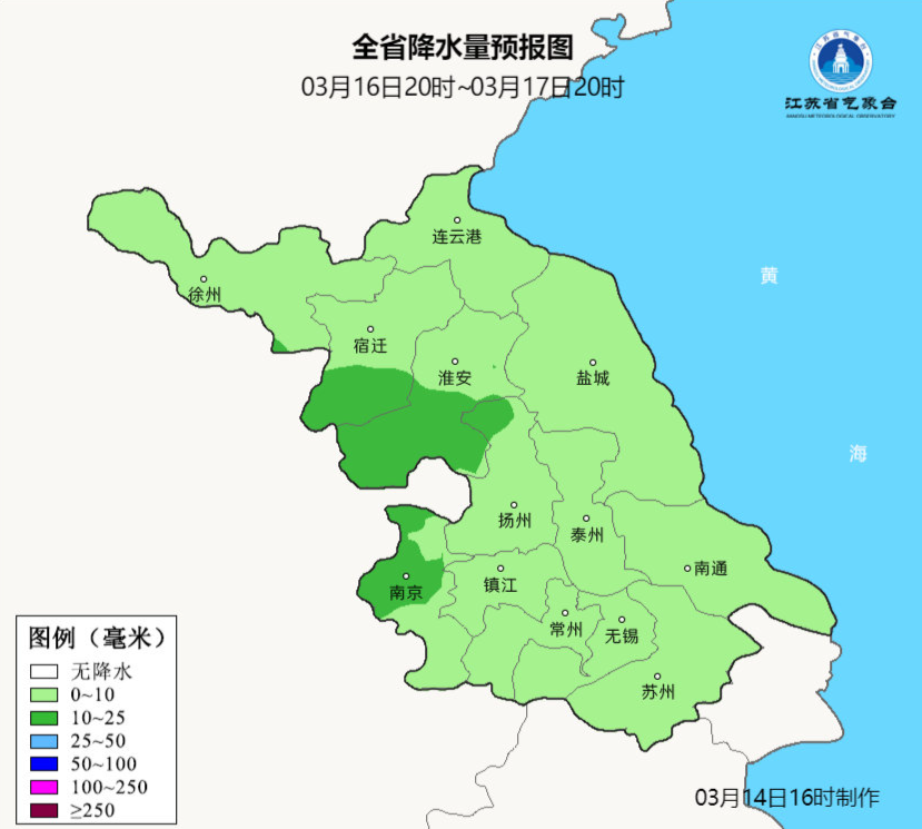 3月16日最高气温在11~12℃之间