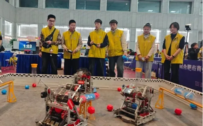 赛场上,合肥八中教育集团蜀山分校的队员们沉着冷静,精准操控机器人完成各项竞赛任务。
