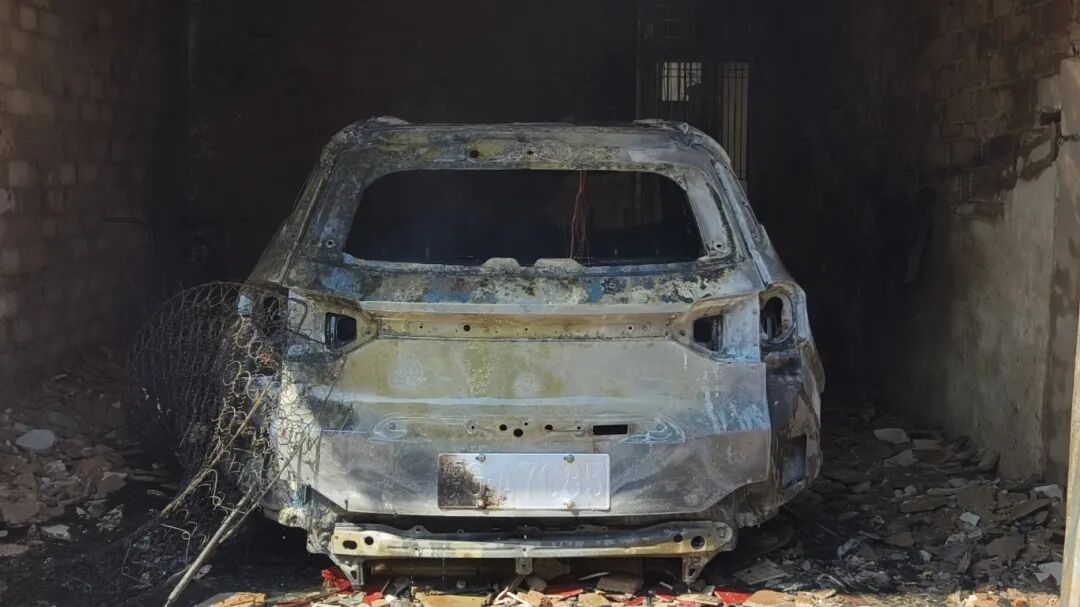江西一孩童玩打火机引发火灾 汽车被烧毁