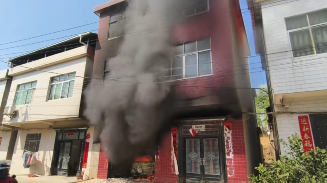 3月14日,九江市彭泽县一栋自建房的一楼内,停放的汽车突然起火,浓烟滚滚,火势还朝着二楼蔓延。