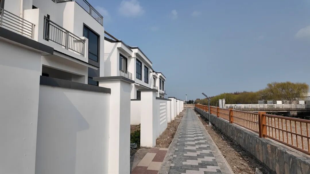 清风轻拂着岸边的绿柳,青黑的瓦片与崭新的房屋相互映照。近日,徐行镇大石皮村的平移安置点上,28栋乡村别墅的建设已进入收尾阶段,预计4月底就能交付给村民。