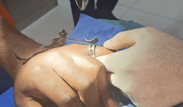 无独有偶,不久前江苏徐州也发生了一起类似卡手意外。3月10日,当地某医院诊室内,一名外籍人士因戒指卡手无法取下紧急就医,由于缺乏专业设备,医生无法处理,随即求助消防员。