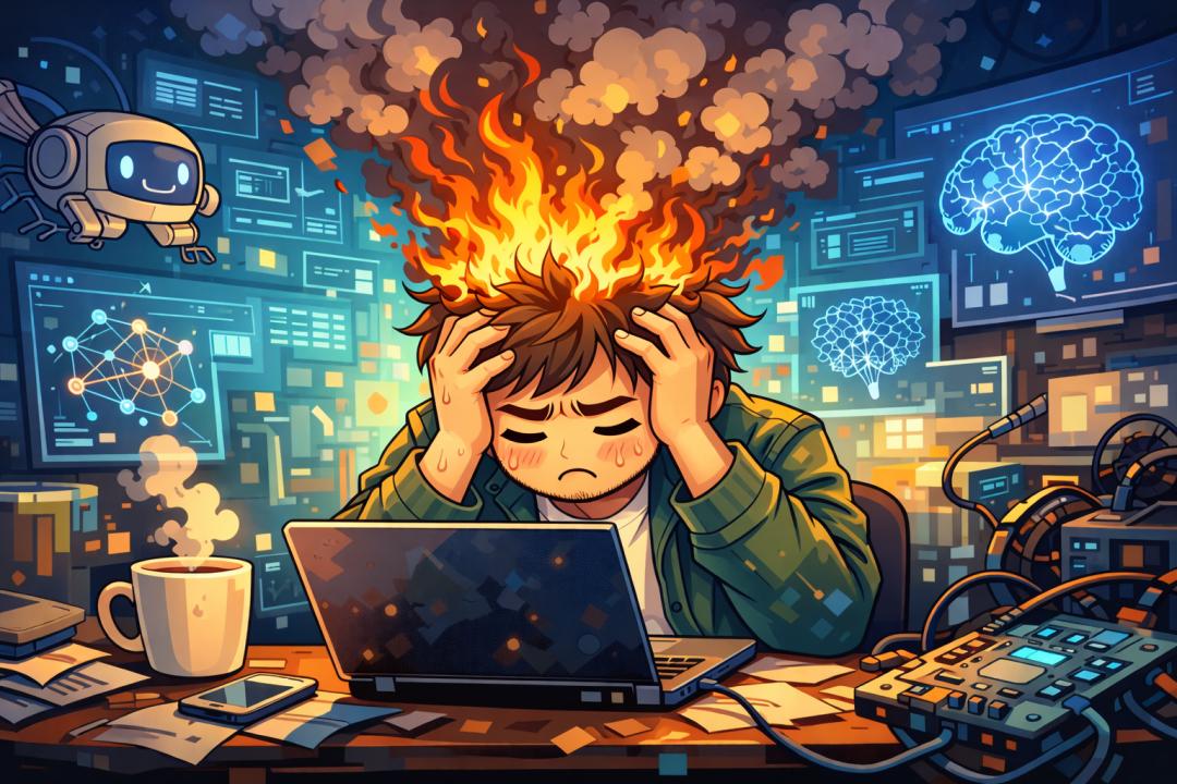 以前是GitHub的代码“搬运工”,现在天天盯着AI Agent干活,工作速度快了,工作量却跟着涨,结果大脑扛不住,直接“冒烟”。