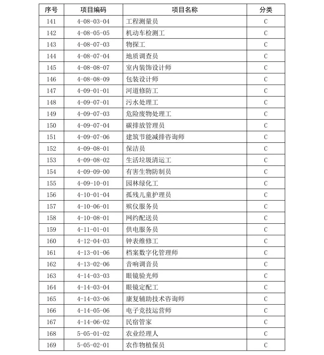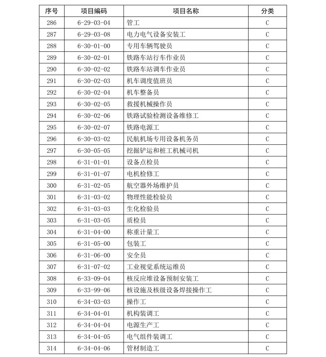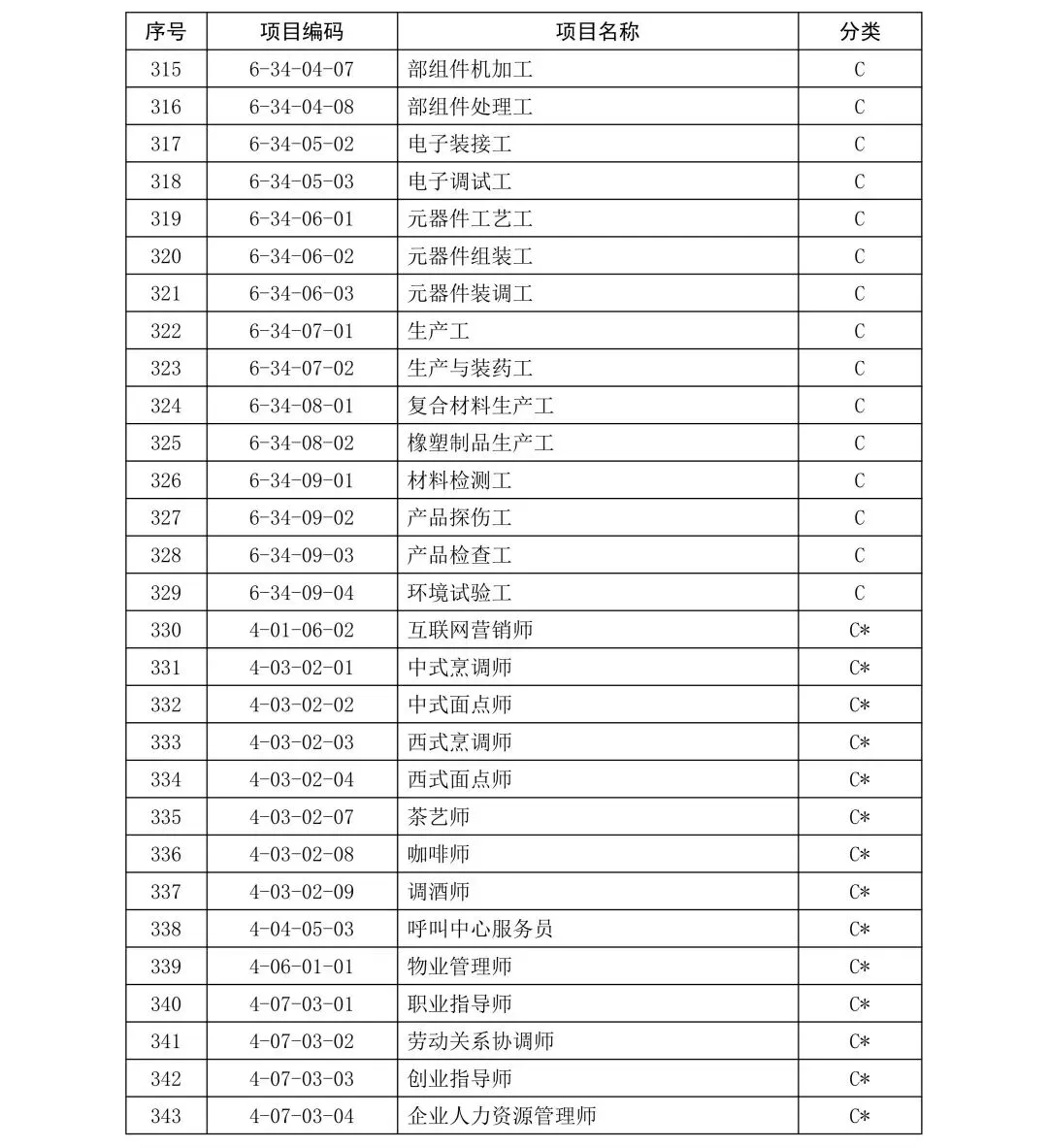 C类项目职业技能证书补贴标准: