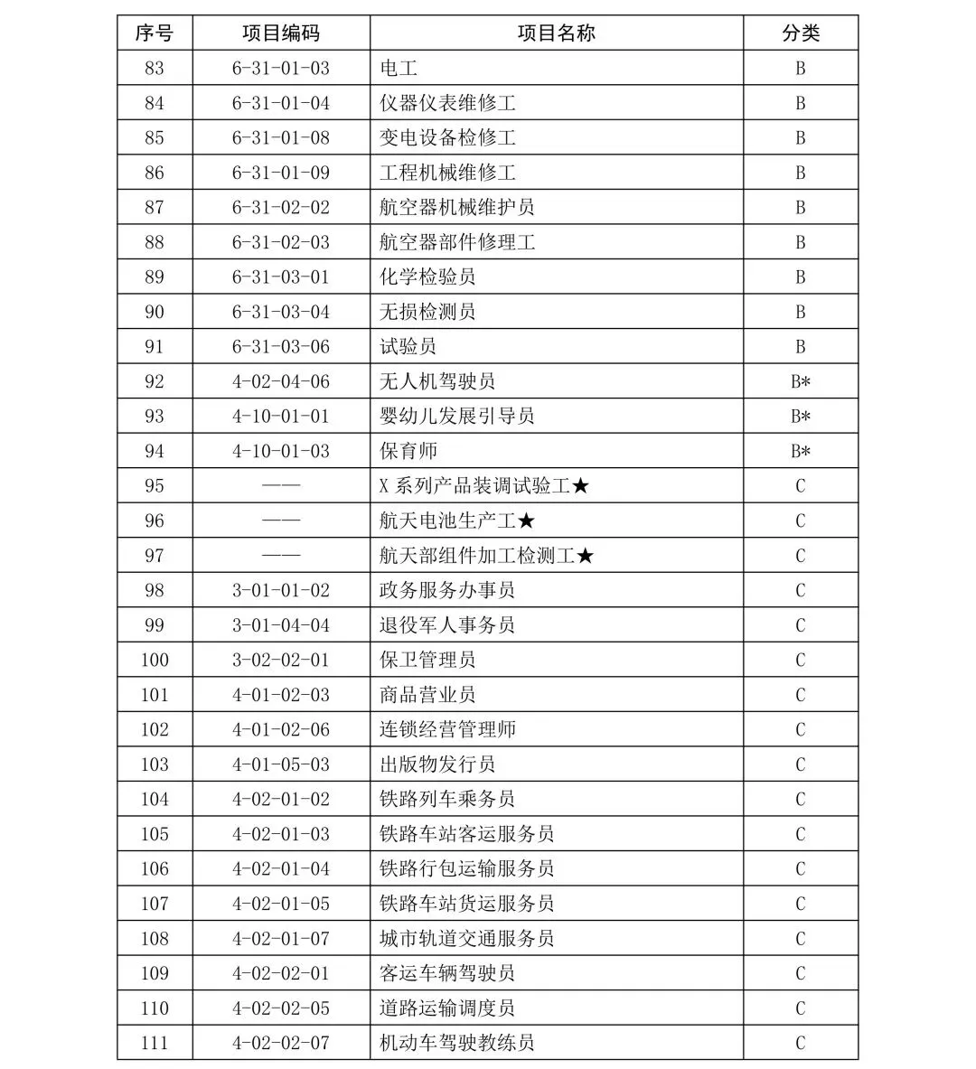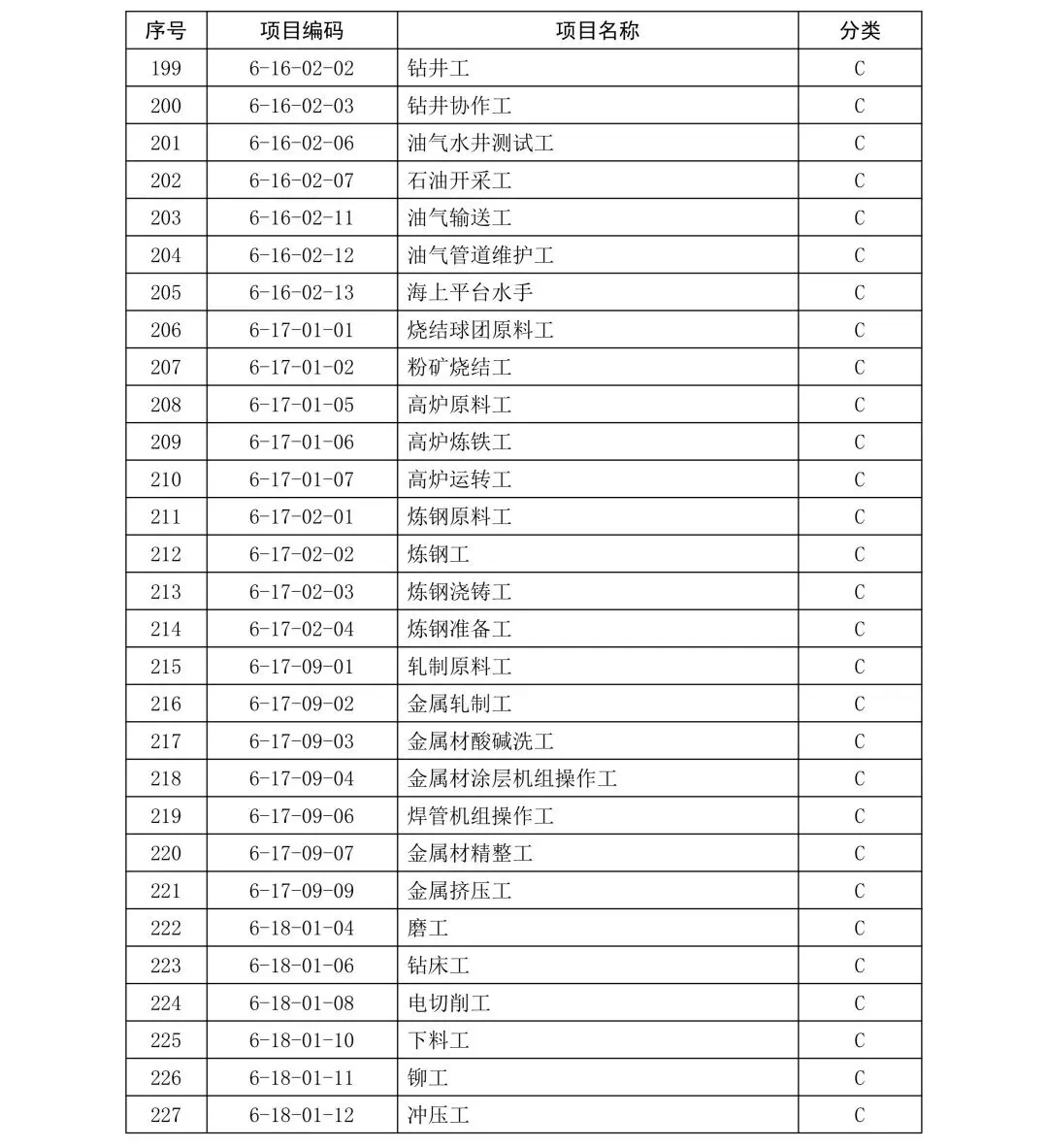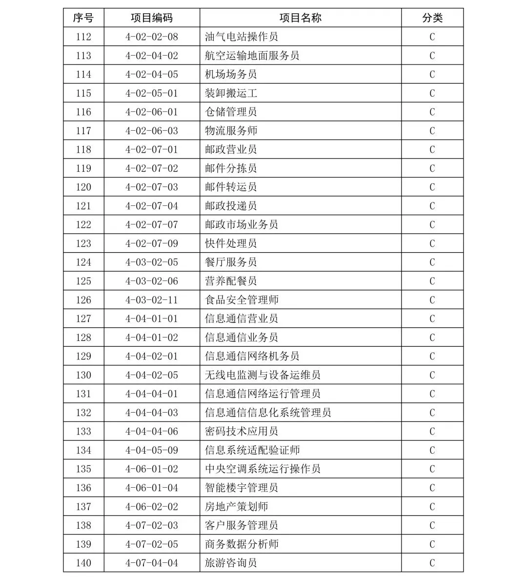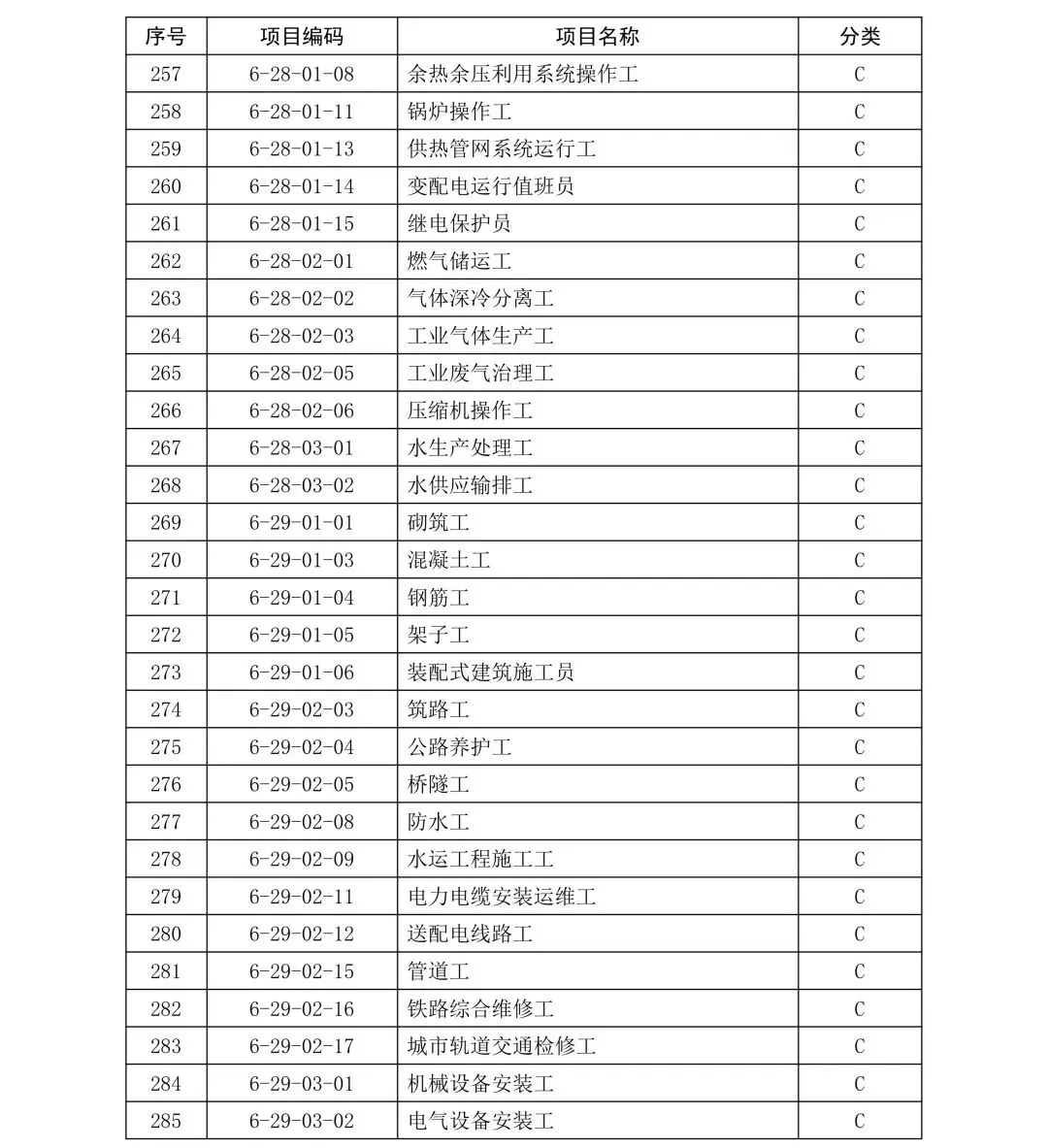 C类项目职业技能证书补贴标准: