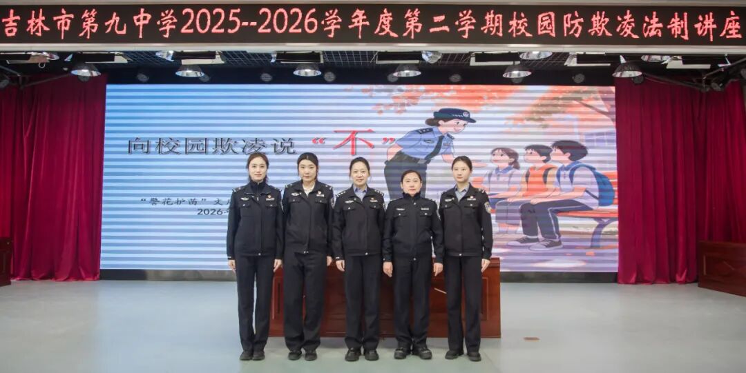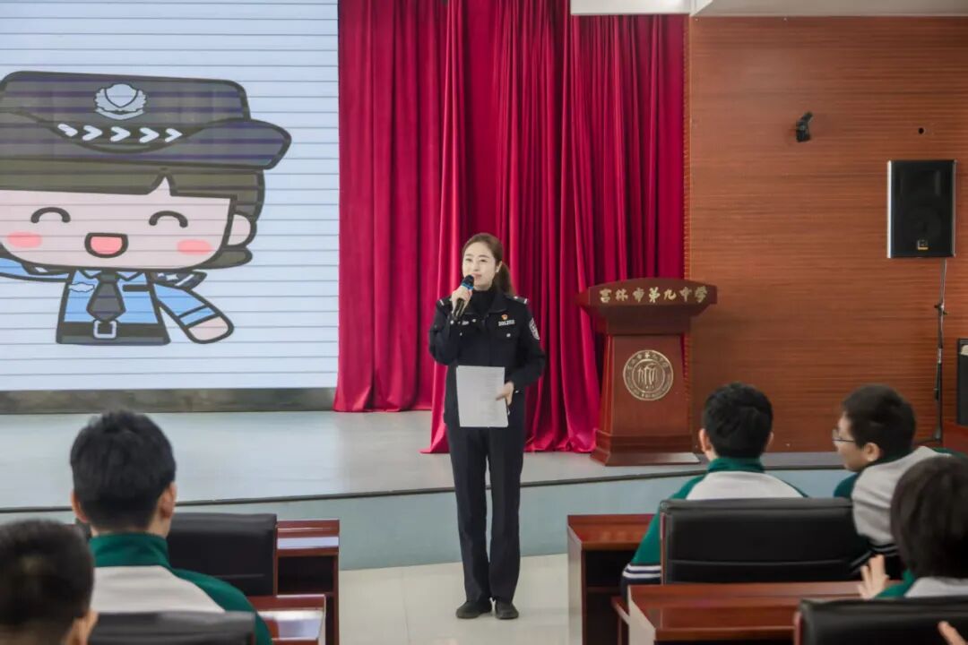 为预防和遏制校园欺凌,昌邑区分局文庙派出所组织“警花护苗”工作队走进吉林市第九中学,开展防欺凌法治教育课。校长唐嘉功、副校长姜涛、池惠萍出席,学生处主任王溯主持讲座。