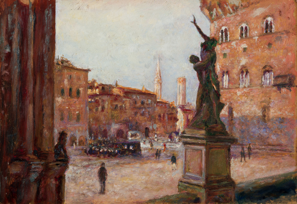 《佛罗伦萨广场》颜文樑 纸板油彩