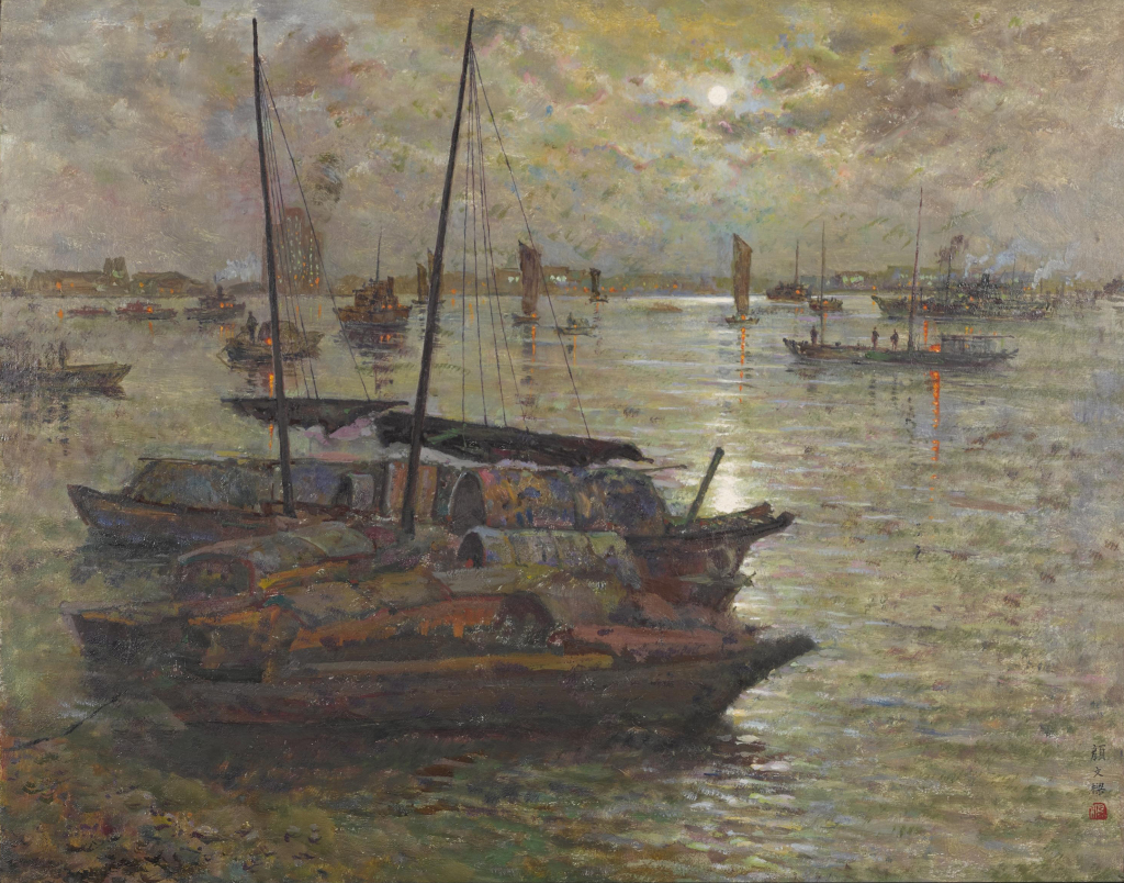 《黄浦江夜航图》颜文樑 油画