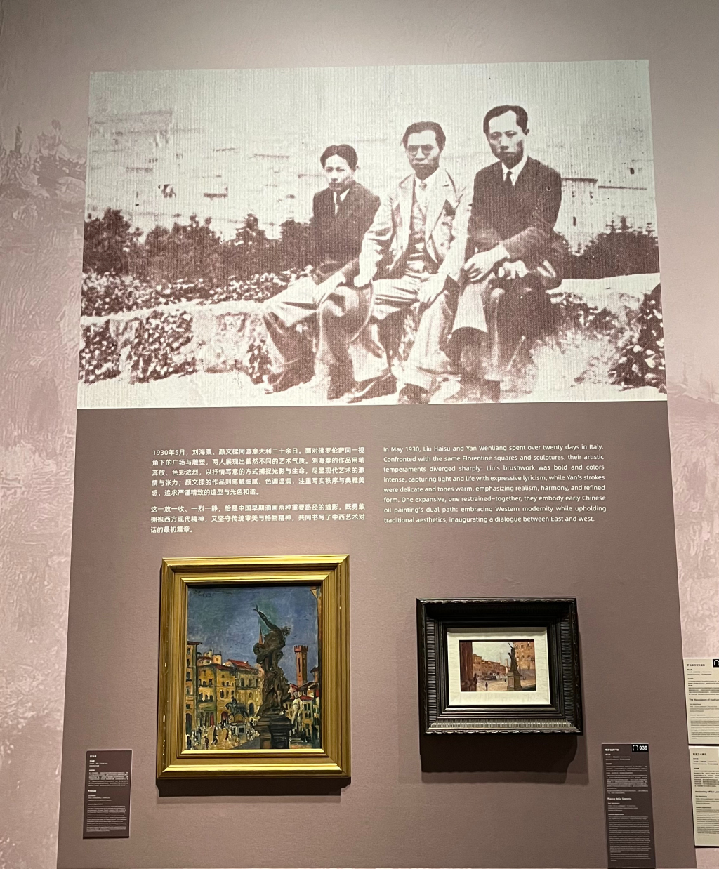 策展人王静表示,二人虽培养众多艺术家,但风格迥异:“刘海粟求变求新,以油画融中式留白;颜文樑严谨细腻,刻画精准宁静。”同游欧洲的创作是中西融合的缩影,也引发思考:当下美育如何中西交流?