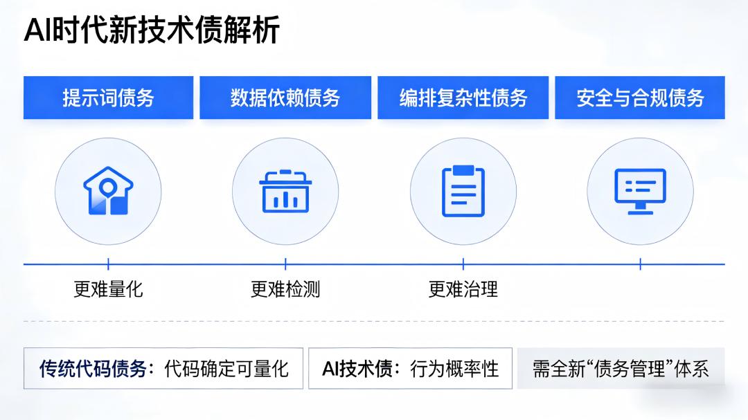 这些新型债务有一个共同特点:它们比传统代码债务更难量化、更难检测、更难治理。代码至少是确定的,而AI的行为具有概率性——这意味着我们需要一套全新的“债务管理”体系。