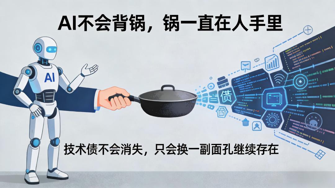 AI不会背锅,锅一直掌握在人类手中。技术债不会消失,只会换一副面孔继续存在。
