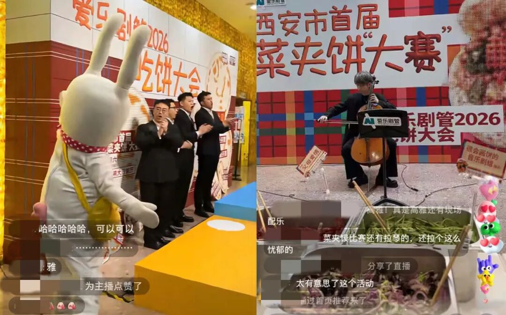 以西安菜夹饼大赛为例,本该上演交响乐、歌剧的古典音乐厅,如今被土豆丝、锅巴、油泼辣子占据,反差感拉满。