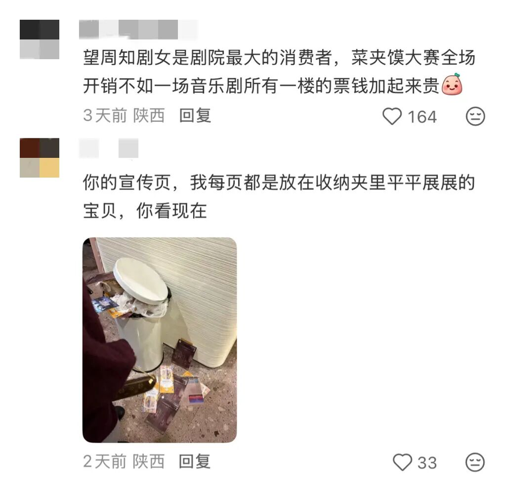 这场“空间叛乱”也引发了网络争议。互联网上的“剧女”——长期深耕音乐剧、话剧、歌剧,对剧院文化和艺术仪式感有高要求的核心粉丝群体,认为陕西大剧院与西安音乐厅的操作辜负了忠实受众的信任,伤害了守护剧场礼仪与艺术氛围的群体情感。