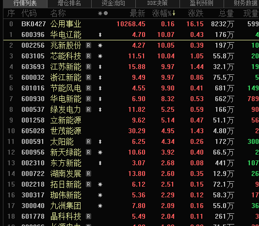 近期公用事业、交通运输、食品饮料、银行等板块表现强势。公用事业板块中,华电辽能、兆新股份、芯能科技、江苏新能等多股涨停。