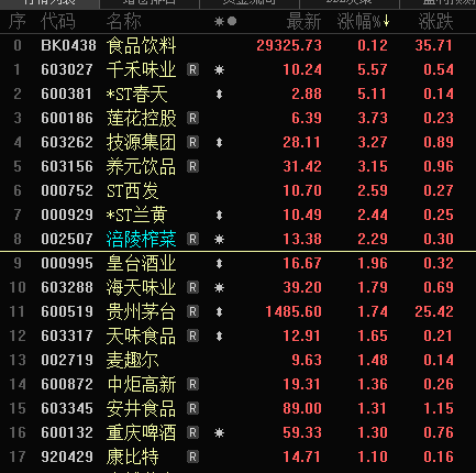 食品饮料行业里,千禾味业、莲花控股、养元饮品等股票涨幅居前。