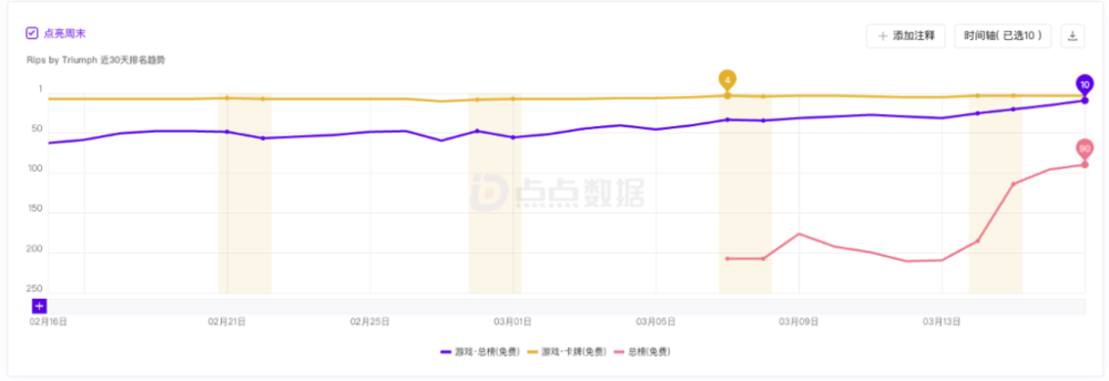 美国直播拆卡热度攀升之际,卡牌行业出现新玩法。3月初,Rips by Triumph悄然登上美区App Store手游下载榜Top10、总榜90位。