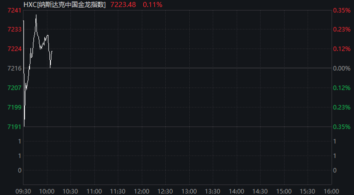 中概股领域,纳斯达克中国金龙指数开盘初期波动剧烈,高开后快速下探转跌,随后又重新翻红,截至发稿涨幅为0.11%。