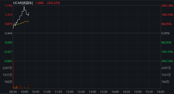 值得关注的是,中概股优品车盘中大幅上涨,最高涨幅接近300%,并且多次触发熔断,截至发稿,该股涨幅仍保持在220%以上。