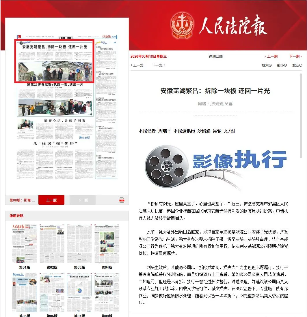 【人民法院报】安徽芜湖繁昌:拆除光伏板 重归阳光屋