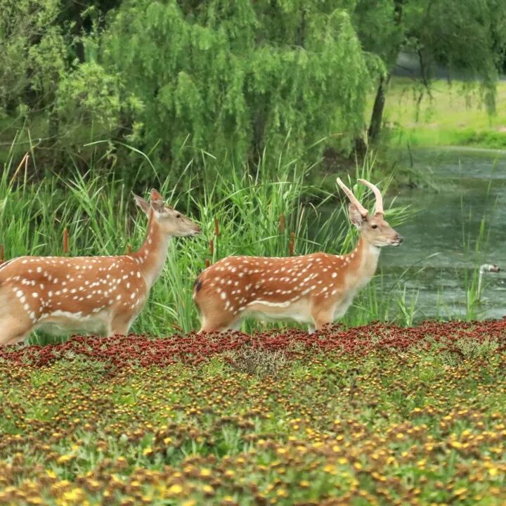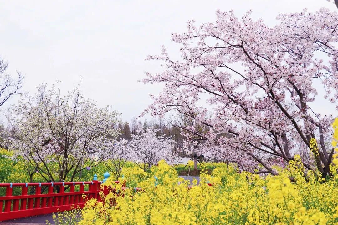 万千树木刚染上鲜嫩新绿,百亩草坪如翠色绒毯铺展,