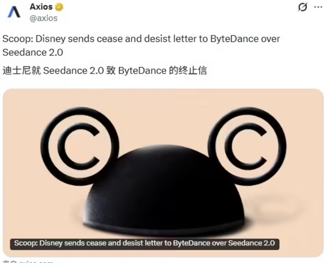 迪士尼律师David Singer指控:“字节跳动对迪士尼IP的虚拟掠夺是蓄意、普遍且完全不可接受的。这只是冰山一角,更令人震惊的是,这仅仅是Seedance 2.0上线几天内发生的事情。”随后,华纳兄弟探索、派拉蒙、Skydance、Netflix和索尼影业联合发出停止侵权函。五大制片厂齐齐发声,美国电影协会亦谴责事件,其董事长兼首席执行官Charles Rivkin要求立即停止相关行为。
