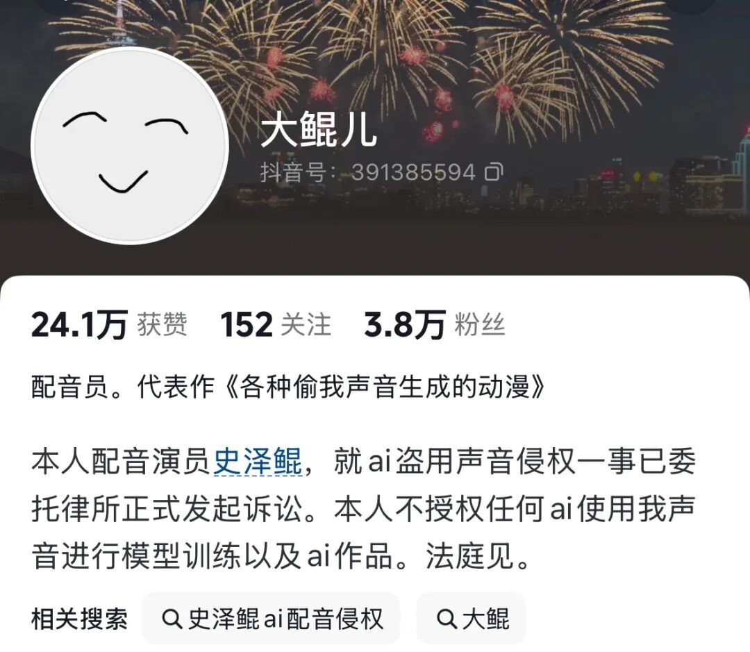 声明中明确划出红线:严禁擅自采集声纹训练AI、建立音色库;禁止传播任何利用AI复刻声线的音视频与产品。声明特别强调,即使打着“学习交流”或“二次创作”的旗号,同样不可接受。值得关注的是,配音演员史泽鲲在声明中宣布,已针对AI侵权事件委托律师发起诉讼。这场维权战,已从口头警告进入司法程序。