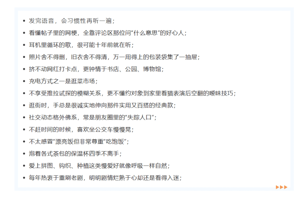 比如怀念老派衣食住行,是受够了消费主义的裹挟。