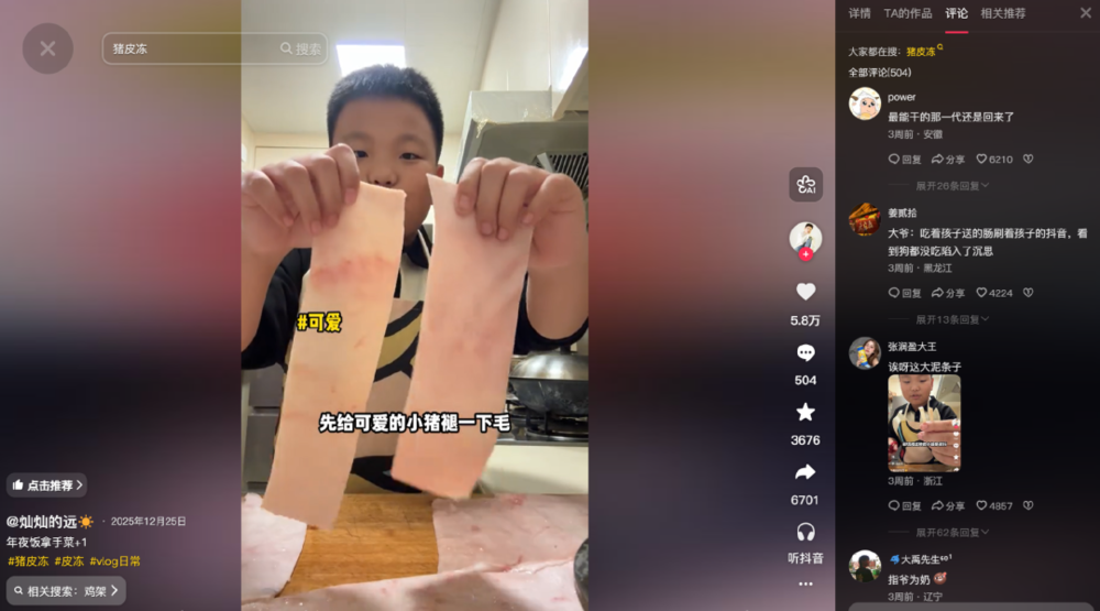 他逛菜市场时能熟练和摊主砍价,精准分辨“里脊”“后丘”等猪肉部位,回家还能系围裙炒一桌好菜。