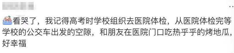 有的是高考体检时,等校车间隙和朋友分享的烤红薯,藏着同窗情谊;